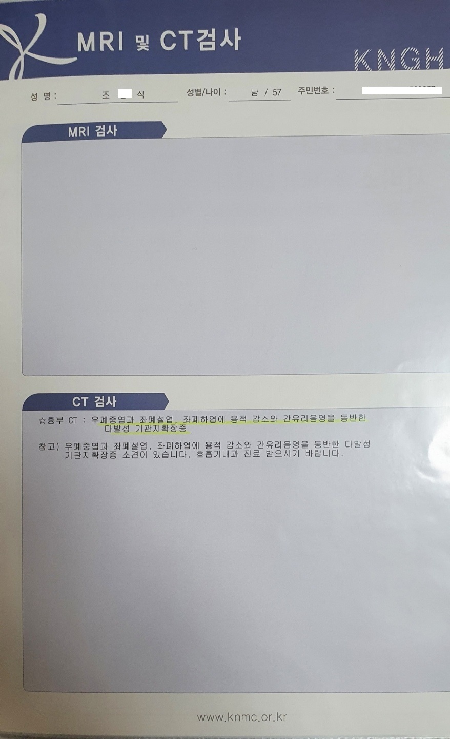 백내장, HDL 수치 좋아지고, 기관지 확장증 정상 판정 받았습니다